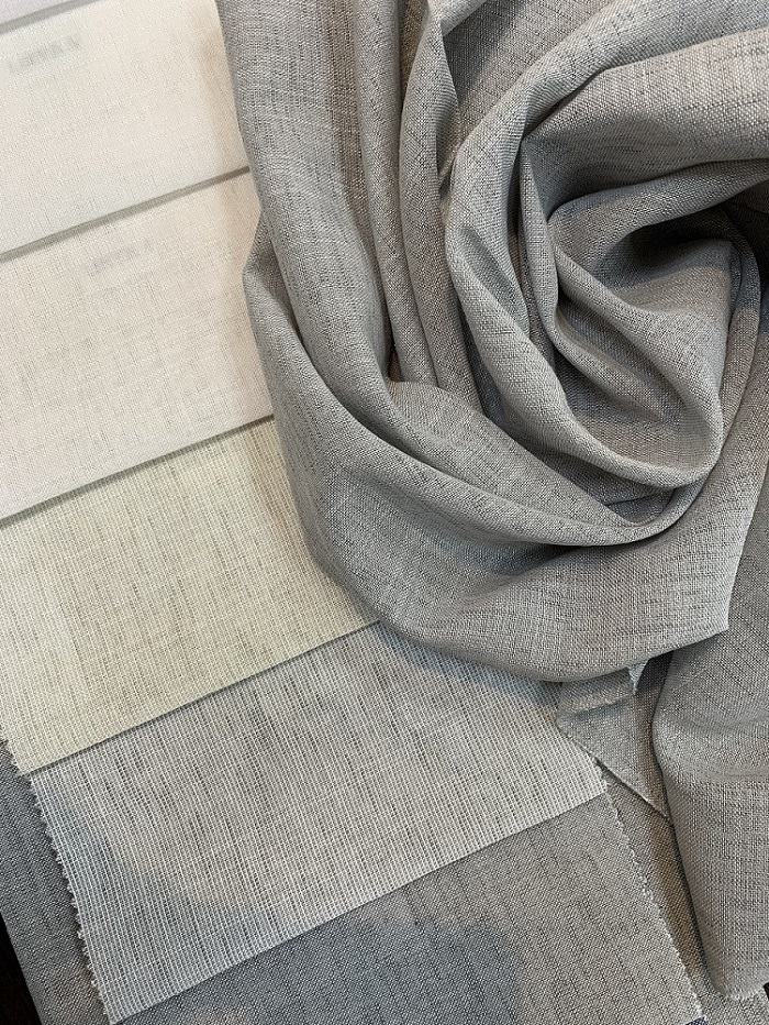 Уникальная зернистость полотна напоминает рогожку. Мягкость и воздушность придаёт ей игривость. Невесомость драпировки создаёт лёгкий и ненавязчивый образ.